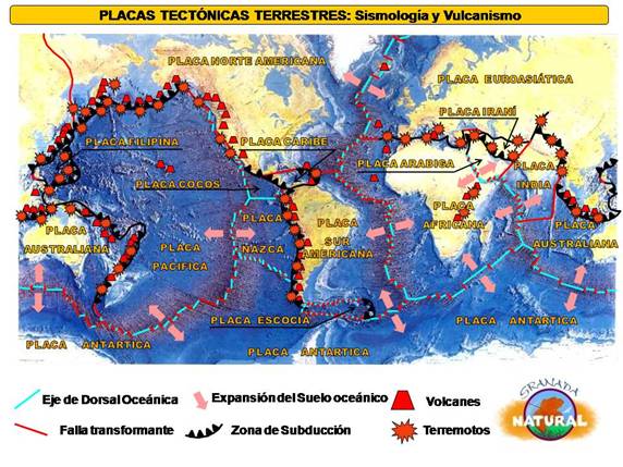 3. Tectónica de placas. Los continentes están continuamente reubicándose, con movimientos muy lentos acercándose o alejándose hacia el Ecuador, los polos o en otra dirección, produciéndose lentos cambios en el Clima.
